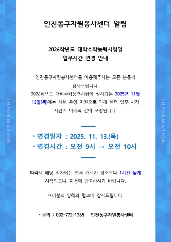2026학년도 대학수학능력시험일 업무시간 변경 안내